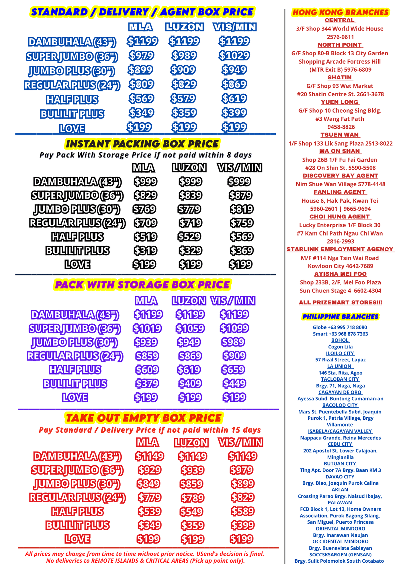 If customer chooses to Upgrade, Loyalty points will all be redeemed. Free box value is Manila IP Price only and sender must pay the price difference depending on size and destination.